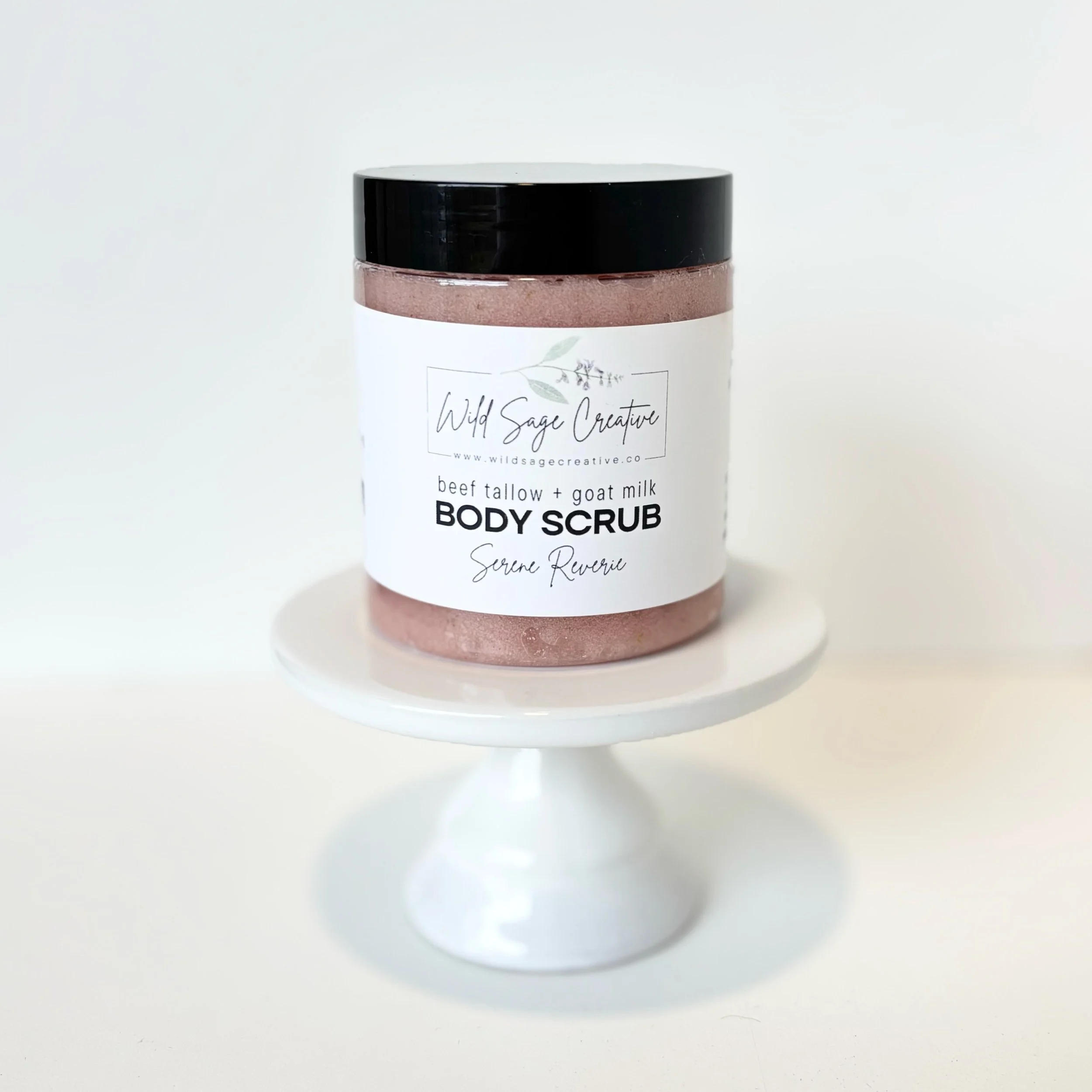 Indulge your senses and nourish your skin with our Toasted Marshmallow Body Scrub. This luxurious blend captures the warm, cozy aroma of the classic sweet treat eaten around a crackling fire, layered with rich vanilla, grounding cedarwood, and a hint of spicy nutmeg. The vanilla essential oil soothes and hydrates, while cedarwood promotes a calming effect and helps balance oily skin. Nutmeg adds an invigorating touch that supports healthy circulation, leaving your skin feeling refreshed and glowing. Rich in vitamins A, D, E, and K, as well as essential fatty acids, beef tallow closely mimics the skin’s natural oils, providing superior hydration and promoting a healthy skin barrier. Its nutrient-dense composition helps soothe dryness, improve elasticity, and support overall skin regeneration, making it an excellent choice for those seeking both indulgence and effective skincare. Exfoliate gently yet effectively as this scrub buffs away dry, dull skin, revealing a silky smooth, radiant complexion that’s soft to the touch. Embrace this classic camping scent and experience it’s soft and cozy benefits!